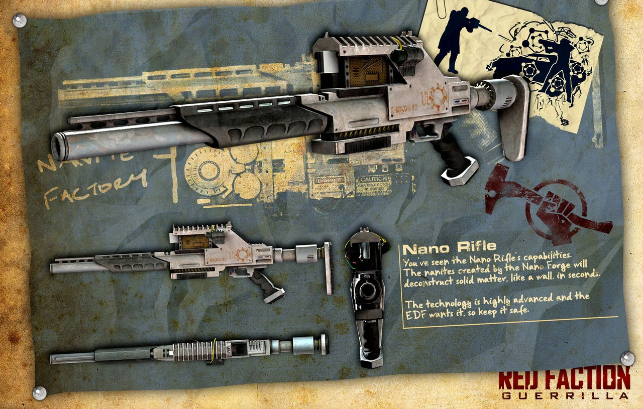 The Nano Rifle can be used as a stealth weapon, as killing EDF infantry with it will not raise the alarm (provided that Mason is not seen). This is useful for completing missions such as Air Traffic Control stealthily. It also works well in precise demolition work, being capable of disintegrating the support struts of bridges before Mason can gain access to heavier duty weaponry.