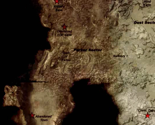 Parker is one of the main residential and mining sectors of Tharsis, named after the hero of the First Martian Revolution, Parker. A small region between Dust and the Free Fire Zone, Parker is the game start location and the first liberated sector in Red Faction: Guerrilla,