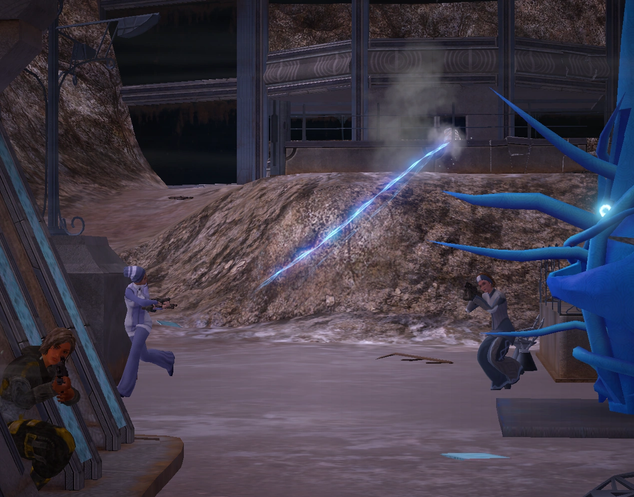 The Raid on Nestled Hills is an action by the Earth Defence Force during the Battle of Eos in the Second Martian Revolution. EDF troops storm the popular shopping area, which is also one of the major flash points of the Lockdown of Eos, and enter combat with the Red Faction force which mobilised to defend it.